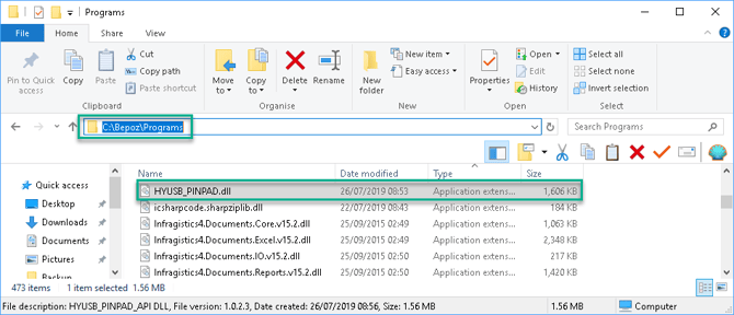 The "HYUSB_PINPAD.dll" needs to be copied into the "\Bepoz\Programs folder" in order for the Device to register correctly when running SmartPOS.
