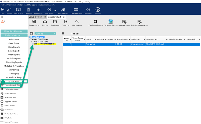 Login to Backoffice navigate to System Setup, Venue Stores and Tills