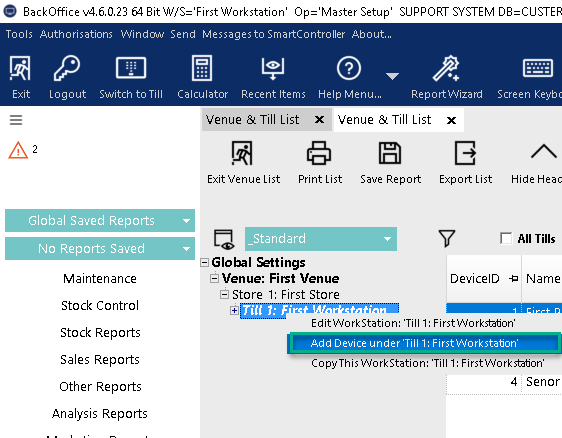 Select the Workstation/Till you would like to add a new device.