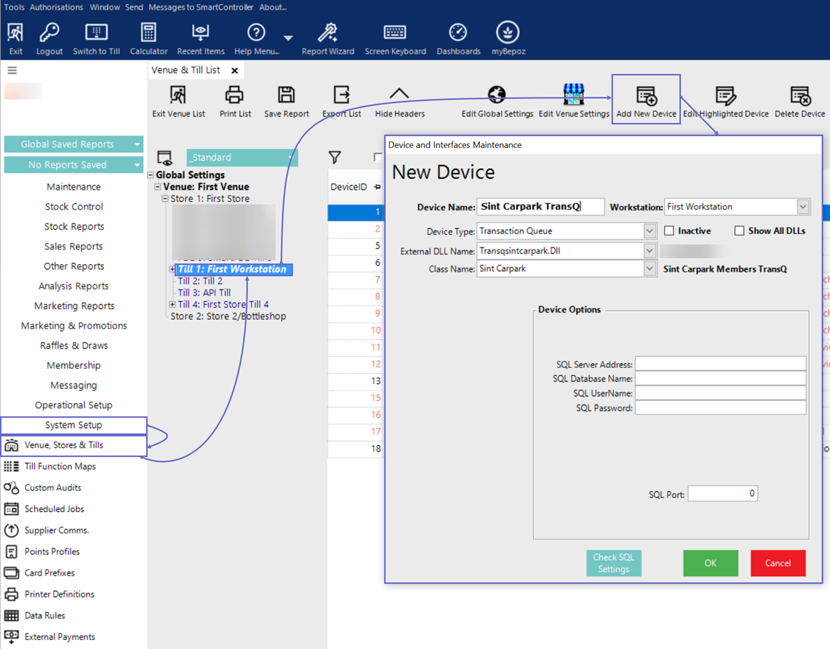 - Select the desired Till within the desired Store within the desired Venue to create the Sint Carpark Transaction Queue device