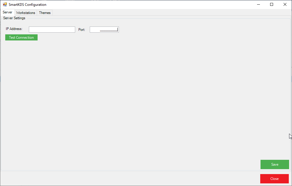 - Select the Server tab and enter the Smart KDS server IP Address and Port number