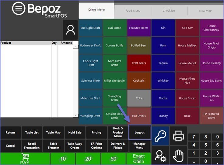 - The Logout Function allows Operators to log off of SmartPOS and keep the Workstation & Cash Drawer secure