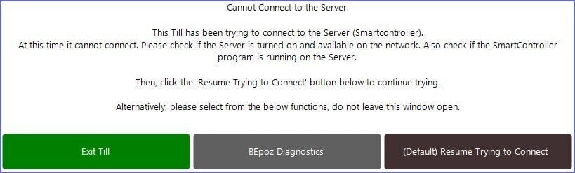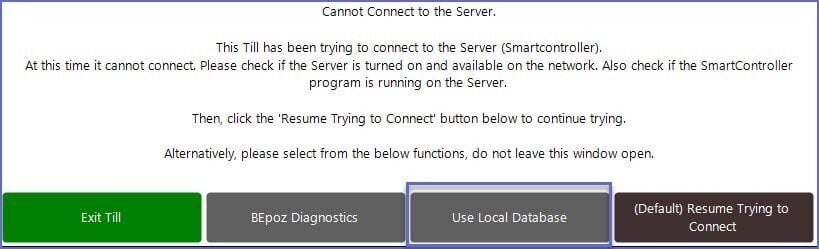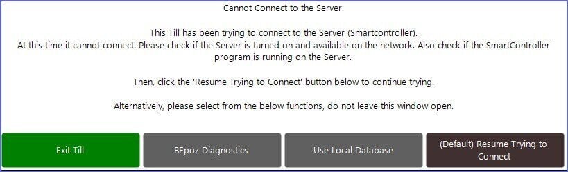 - The SmartPOS Workstation will automatically connect to the server when the connection to the SmartController resumes