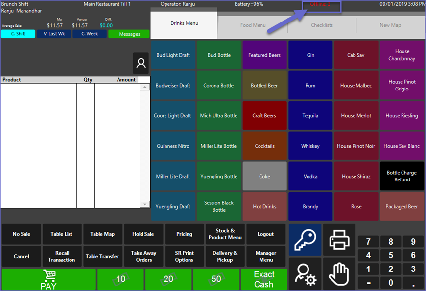 - After a SmartPOS Workstation has entered Offline Mode, the System will load up the Current Local Database and the Workstation will be running in Offline Mode