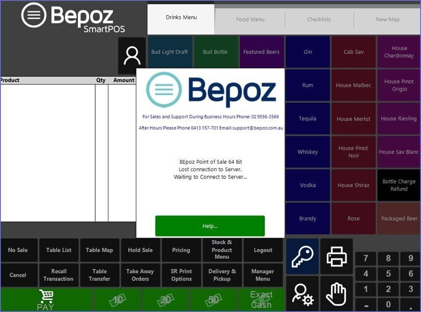 - If a SmartPOS Workstation gets disconnected from Smart Controller, a prompt will appear on the screen with a 'Help...' button at the bottom
