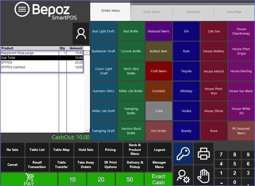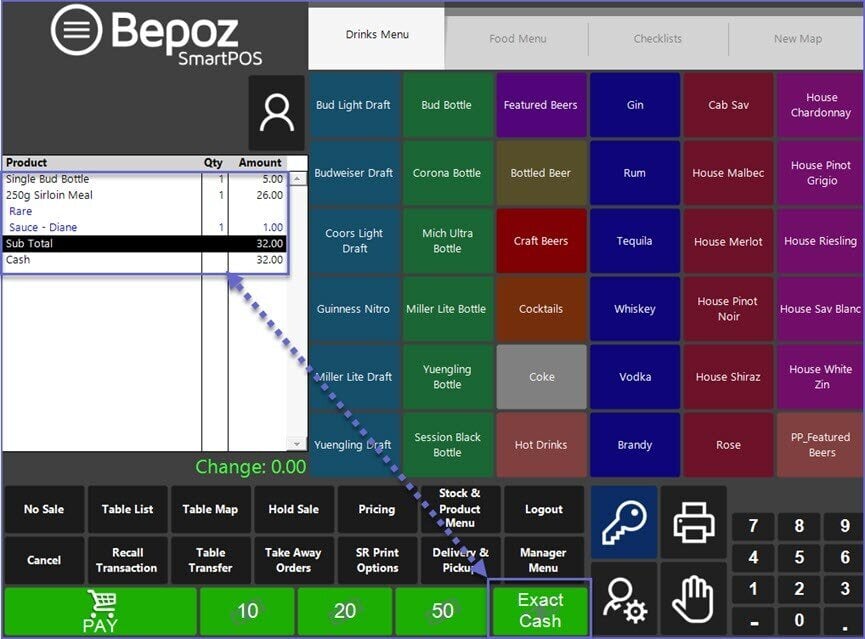 The Cash Button may have another Name as designated by your Bepoz Administrator