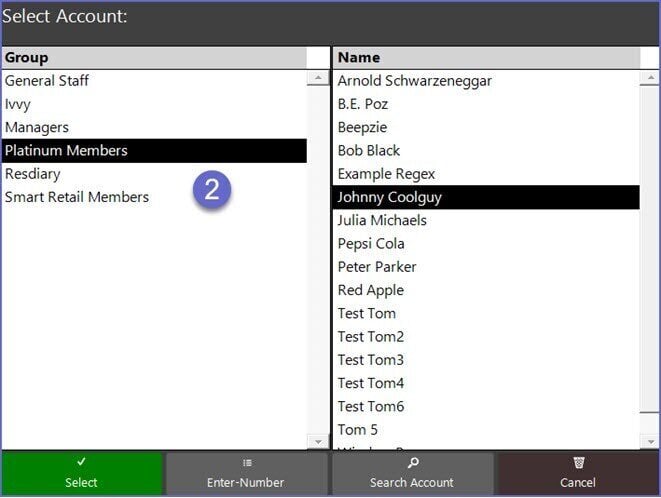 This will open a window prompting the Operator to select the desired Account; the Operator can navigate through the Account Group List, enter the Account Number, or search for an Account