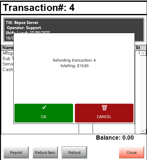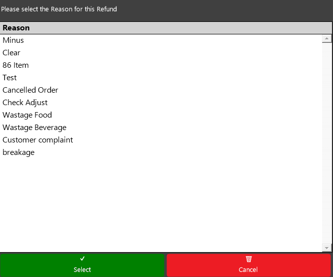 - Note - If Reasons are on, you may need to select a Reason for the Return/Refund