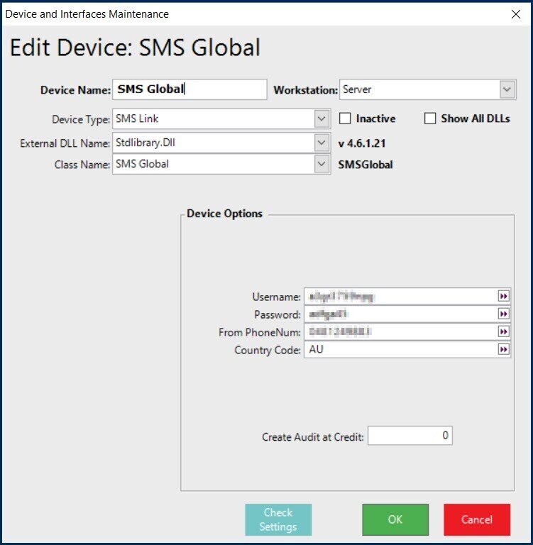 This article covers the requirements for settings up a BackOffice Device to interface to SMS Global.