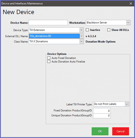 - The Class name should be set too 'Till X Donations' once the External Dll Name has been selected as 'Tillx_donattions.dll'