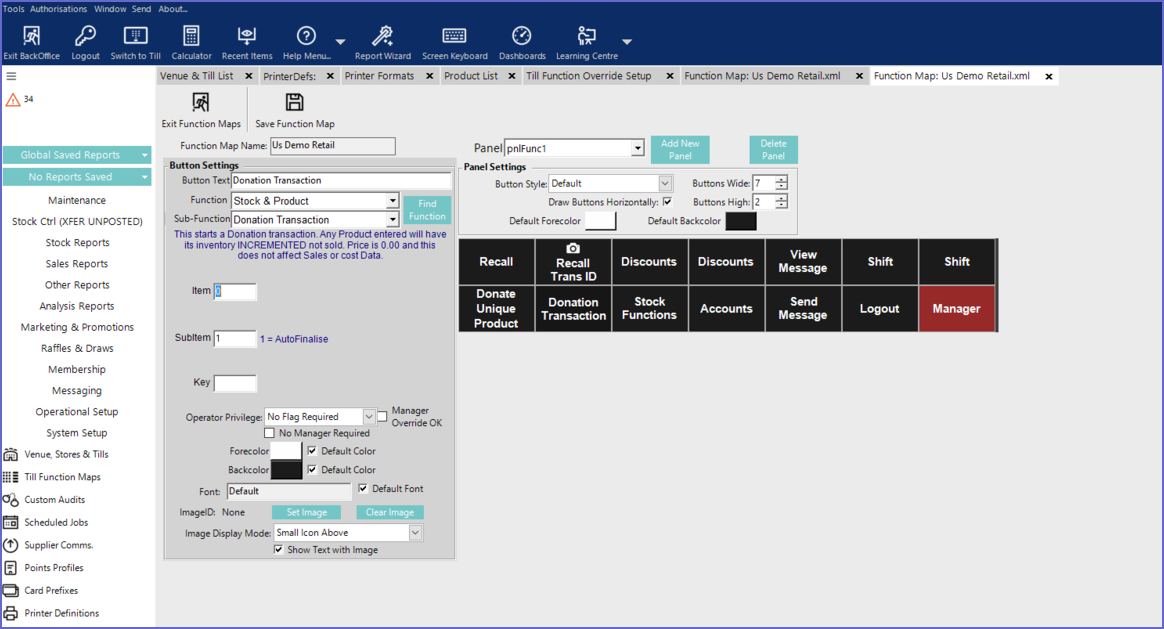 - To set up the Function Buttons, Operators will need to edit the existing till function map