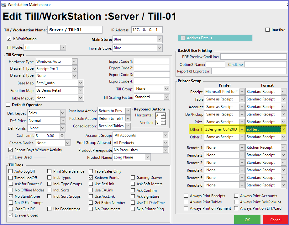 - With EPL label printers, before the operators can assign the label Printer to the till they will need to create a Printer format for the label printer