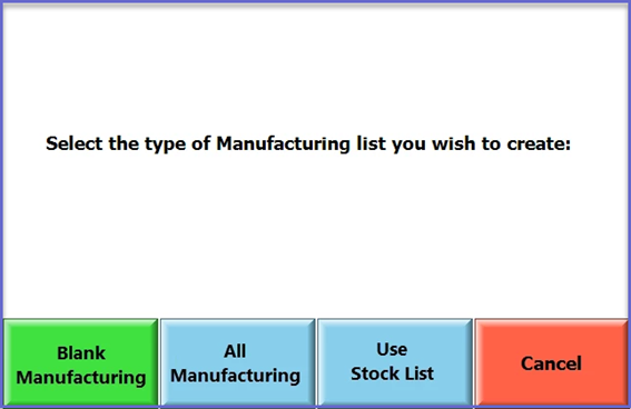 - When âManufacturing List Onlyâ flag is OFF, other options are displayed for manufacturing: