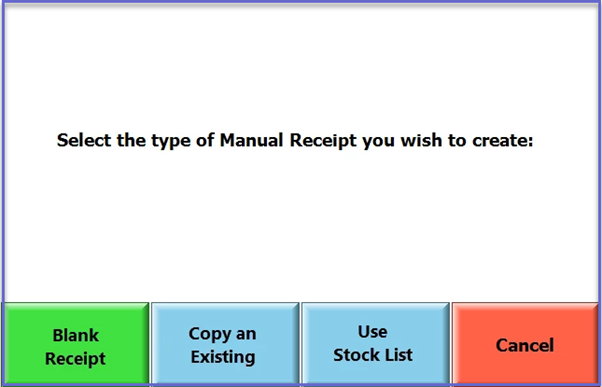 - When ‘Receive Manual Receipt flag is ON, only two options are displayed to the Operator for Manual Receipt: