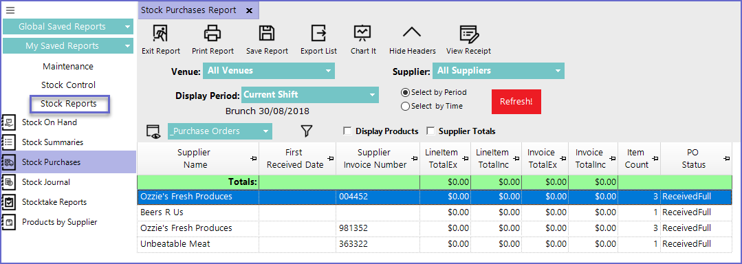 - From the side menu, Select "Stock Reports" to expand the list of Available Reports