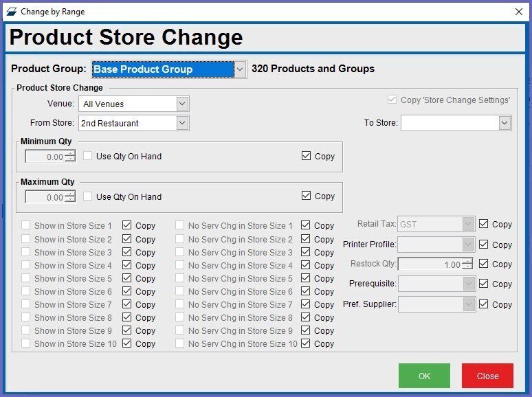 - The options here will look exactly the same as in the standard Store Change by Range feature that is used within the Product List