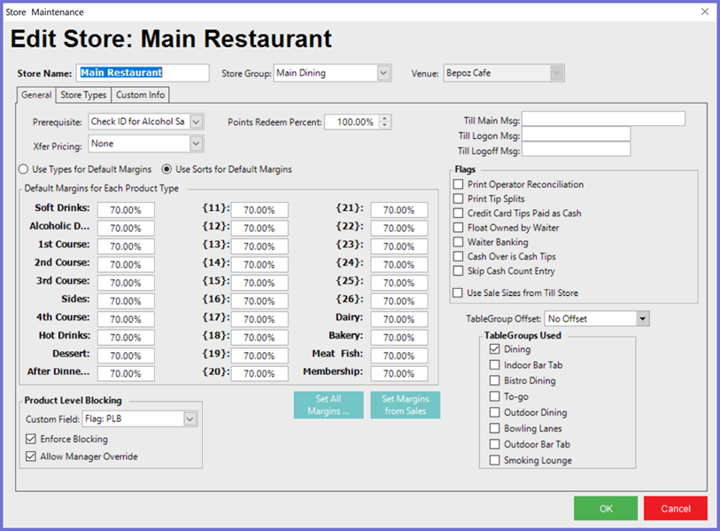 - System Setup: "Maintain Venue, Stores & Tills" Flag