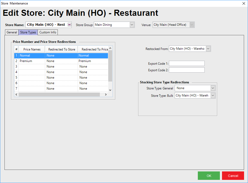 "Store Types" Tab