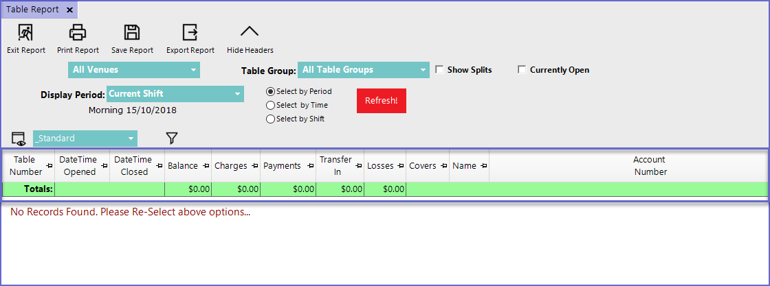 - Select Table Reports which will open a new Table Report Window