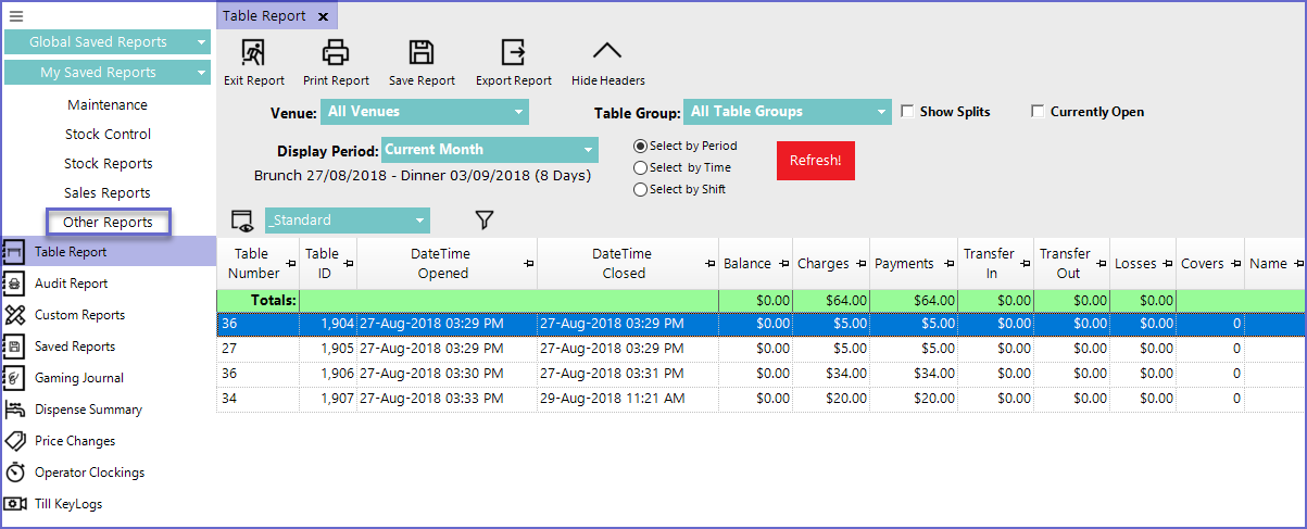 The Table Report also works similar to the Transaction Journal in that if a row is double-clicked, it will display the transaction similar to the way it appears at a POS workstation.