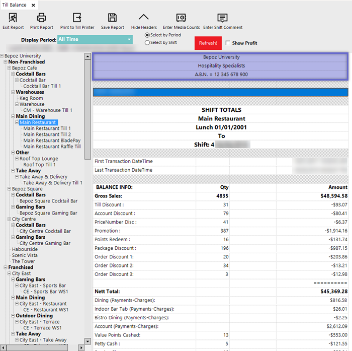 - Till Balance Header section as the name suggests appears at the very top of the Till Balance Report