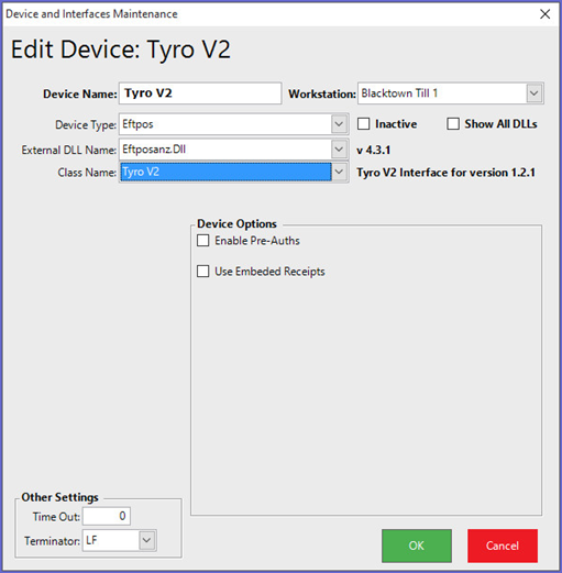 This article contains the Device Setups for the Tyro V2 integration with Bepoz Version 4.3.0.0. Tyro Integration allows Bepoz to communicate directly with Tyro EFTPOS terminals. Each Till that will have integrated Tyro EFTPOS will need to have the relevant TYRO device added to that till through Bepoz BackOffice. Each Till then also requires the installation of the Tyro program TTA.exe. This device establishes the pairing between the Tyro CUBE terminal and the Till.
