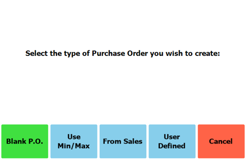 The User Defined method allows for creating a Purchase Order based on Min, Max or Sales History and also then allows for a number of manual adjustments, if required.