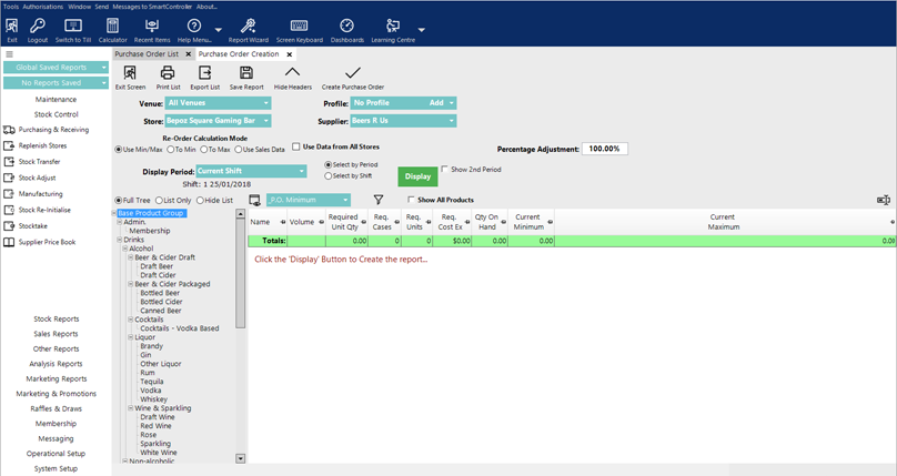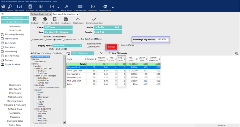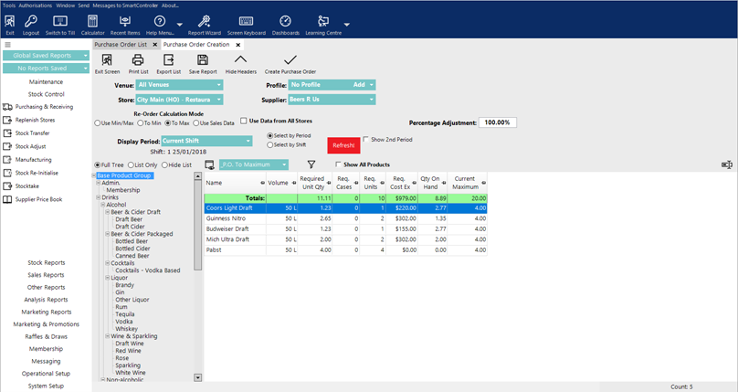 Once happy with the figures, a Purchase Order can be created from the generated report by selecting the Create Purchase Order button