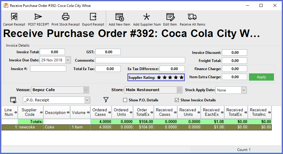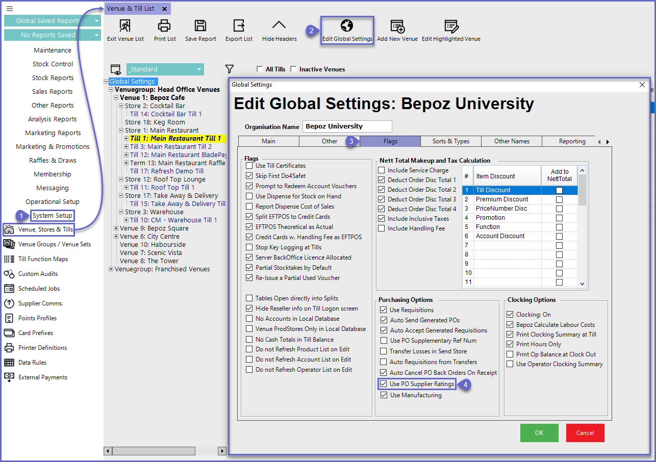 This article covers Supplier Ratings in BackOffice and how they are applied in Purchase Orders and Reports.