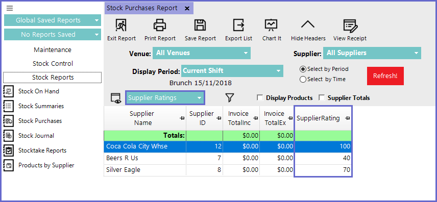 • To create a Report that Utilises Supplier Ratings, follow the steps below: