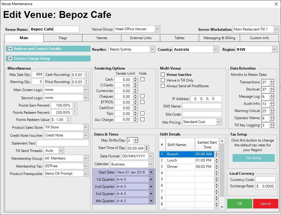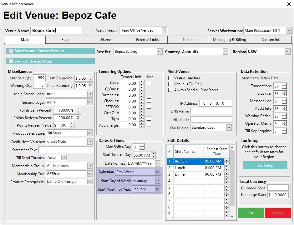 - System Setup: "Maintain Venue, Stores & Tills" Flag
