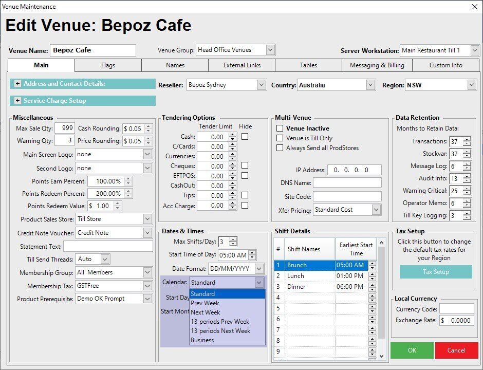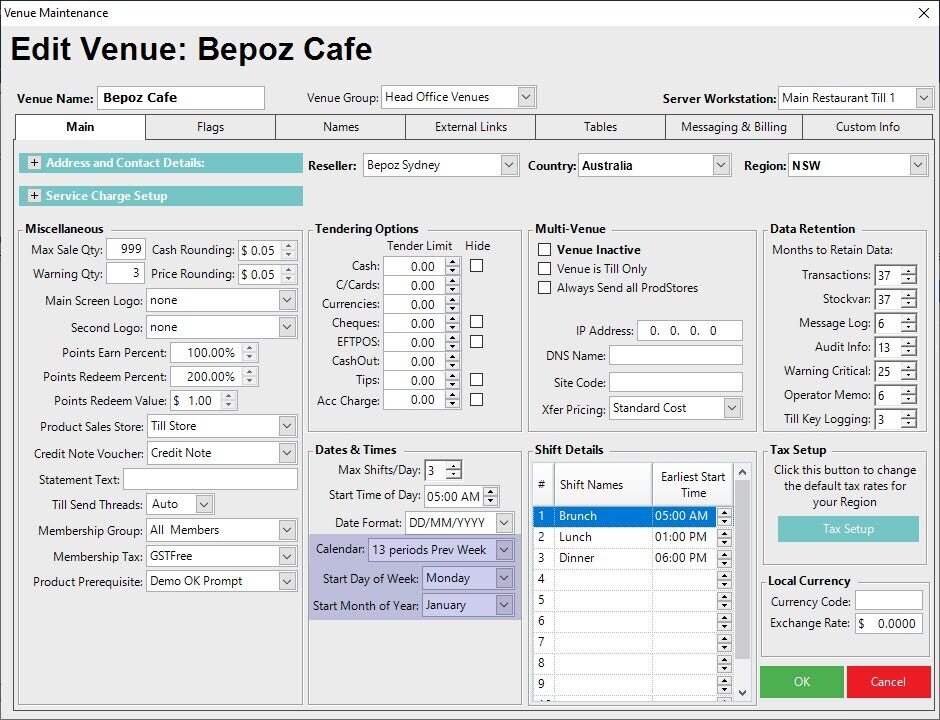 - This option allows for 13 “Periods” in the year each with 4 weeks whereby the Business' finances follow these parameters but Reporting in Bepoz may still be analysed per calendar Month