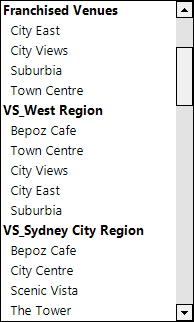 - Directly below each Venue Group, the Venues within the Venue Group will be listed