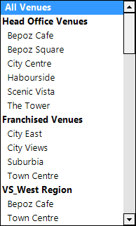 - In most areas of BackOffice where a Venue or Venue Group can be selected from a drop-down list, Venue Sets are available for selection in addition to the Venue Groups