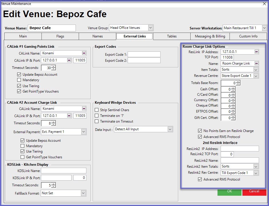 - The second is the Account Charge Link which is used for MultiVenue Systems to link the local Venues to one Membership database at HeadOffice