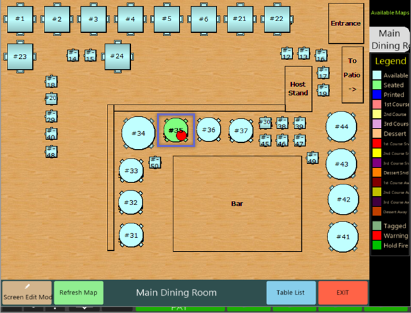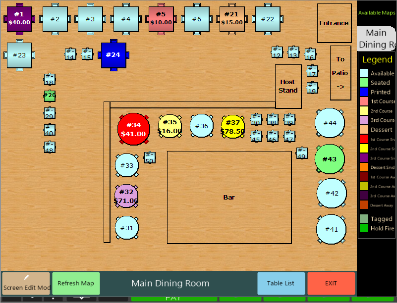 - The color set for each status will appear in the legend of the Table Map and the Tables themselves in the Table Map will take on the color that corresponds to its current status