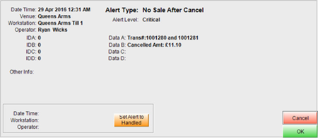 - Cancel - Will close the pop-up and not change the status of the Alert