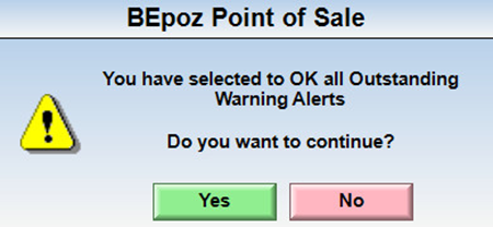To handle all warnings select the "OK all Warnings" from above the Alert list