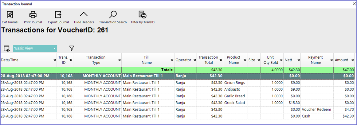 - The Transaction that will be displayed are the ones for which the voucher has been Redeemed; this can be done by setting up a Vouchers Redeem function in the Accounts Panel of Till Function Map