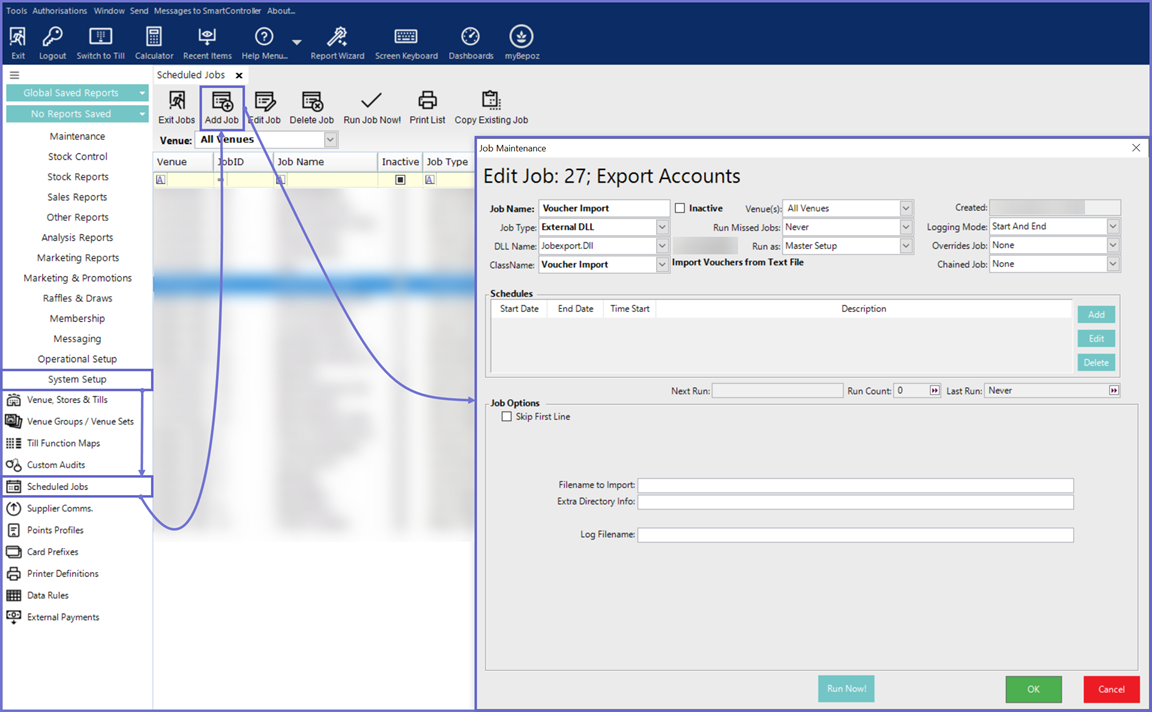 This article demonstrates the file format that is required to import vouchers into Bepoz via the Voucher Import Scheduled Job and explains how to set up the Scheduled Job in BackOffice. Prerequisites