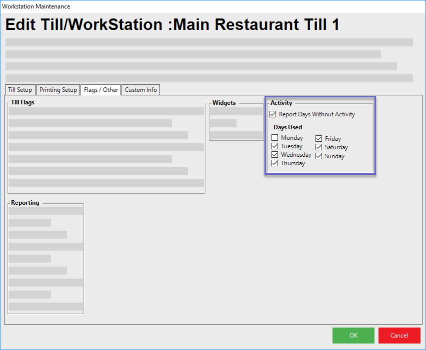 The Till Flags section contains flags which are more or less general settings regarding the operation of the Workstation.
