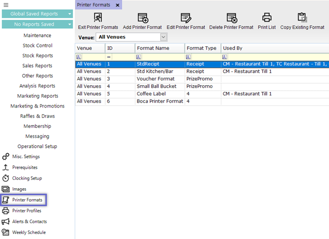 - The Format drop-down refers to the System's Printer Formats that have been configured and will allow for selecting the desired one to be used when Printing each Printer Type