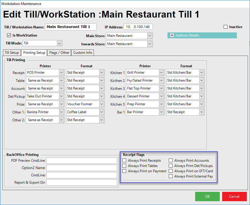 - Multiple Receipt Flags can be enabled for the same Workstation if desired