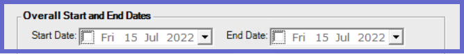 - Overall Start and End Dates click the boxes next to the start/end date to choose the current date or click the down arrows next to the start/end date to open a calendar and choose a date