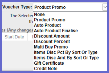 - A dropdown list that displays the different kinds of vouchers that are available in Bepoz
