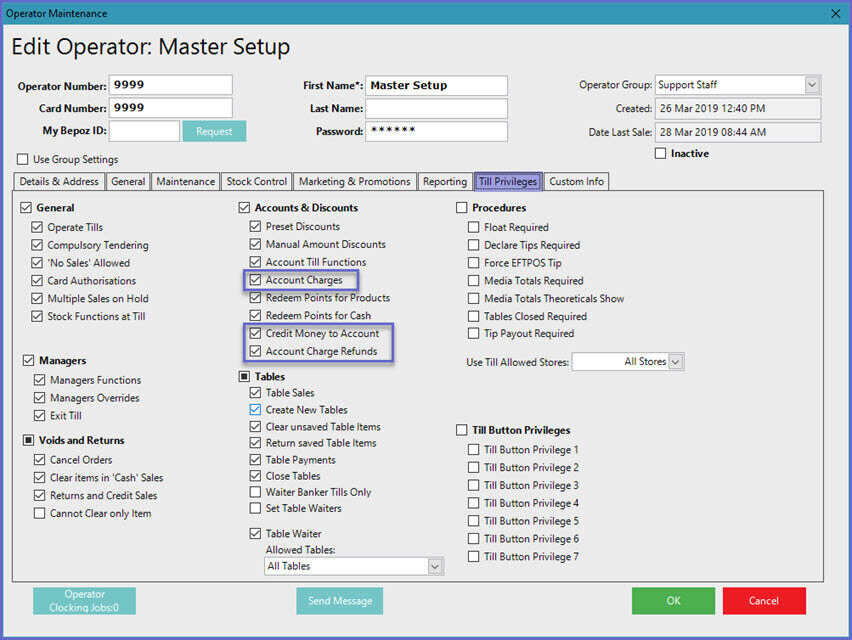- The flags permitting these can be found in BackOffice within Operator Maintenance on the Till Privileges Tab