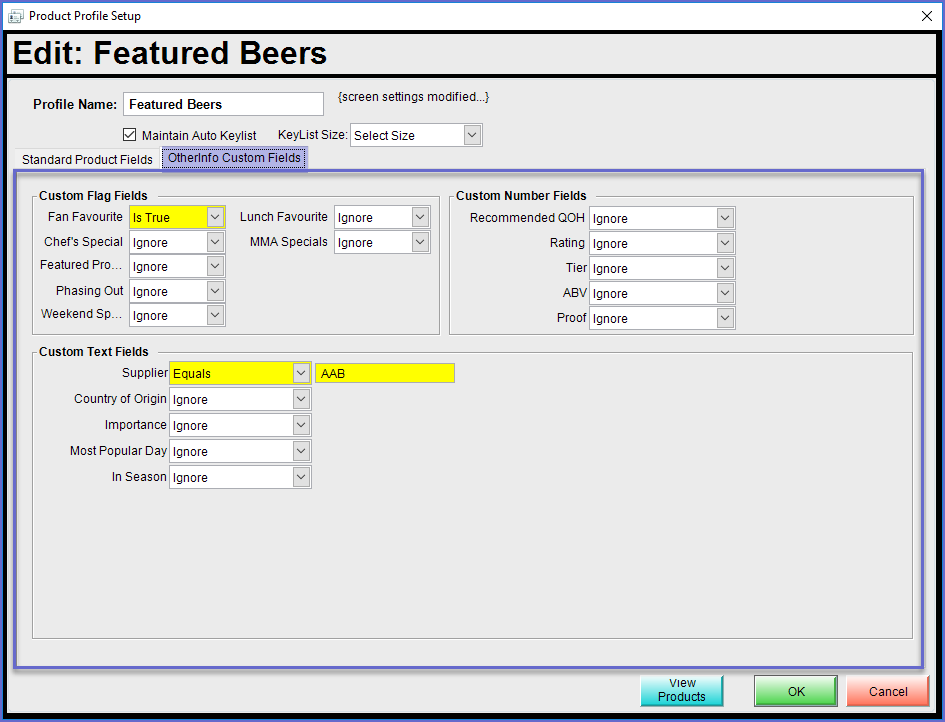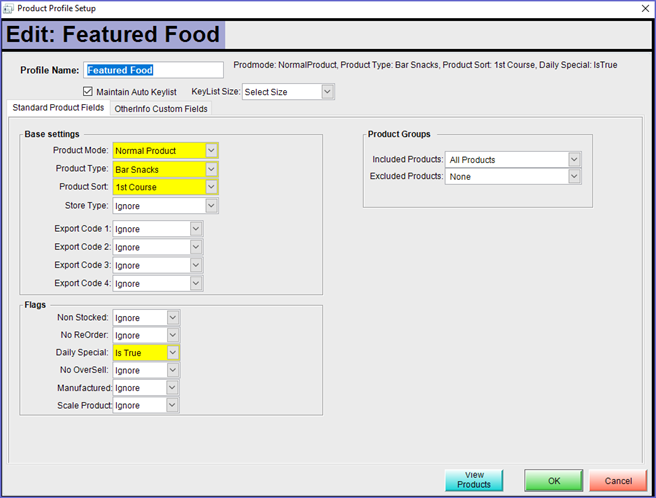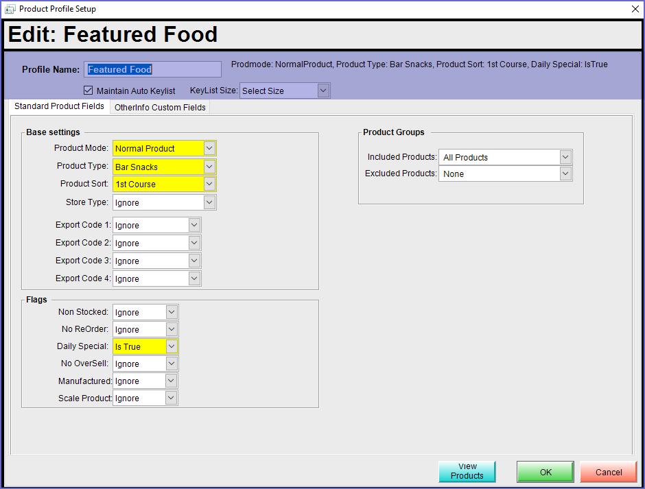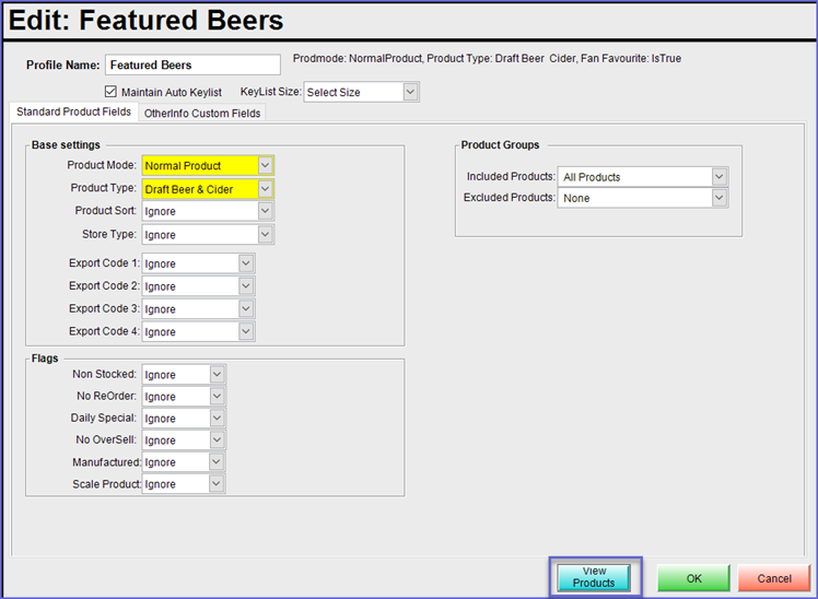 • To check which Products qualify for the Product Profile, click on the View Products button below Product Groups