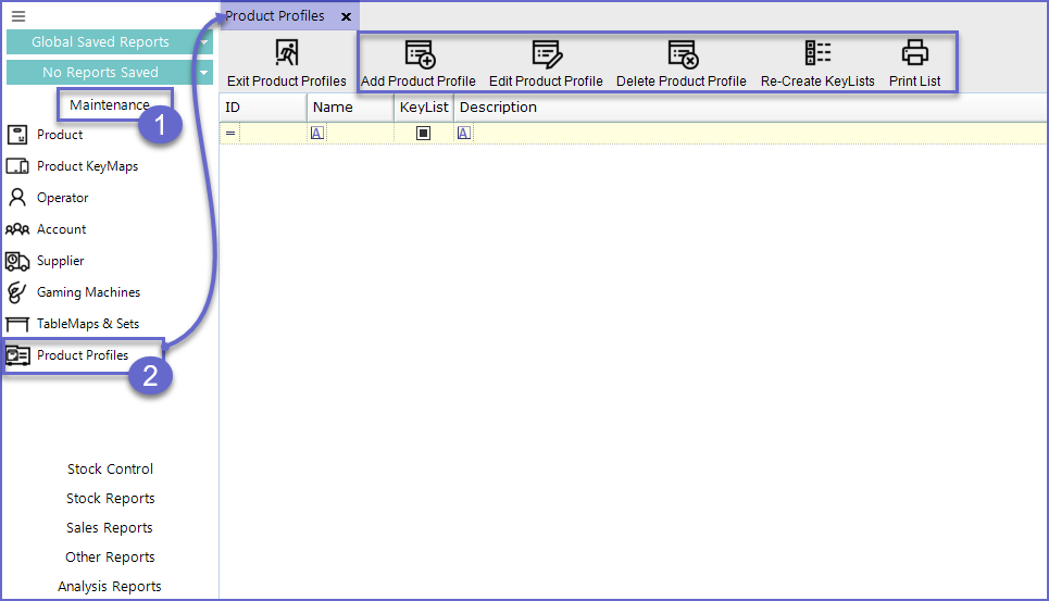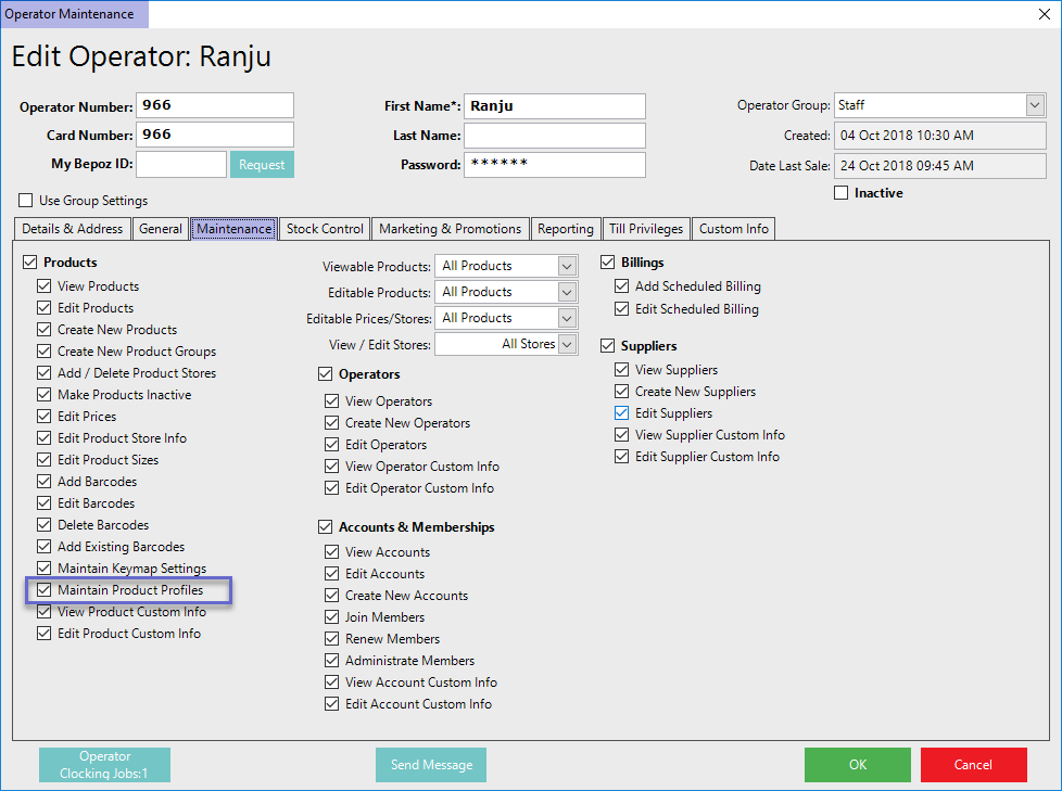 • In order to access and maintain Product Profiles, an Operator must have the Maintain Product Profiles privilege flag enabled within Operator Maintenance