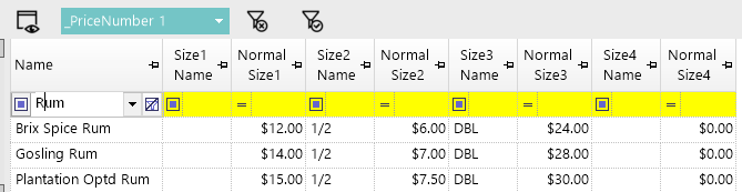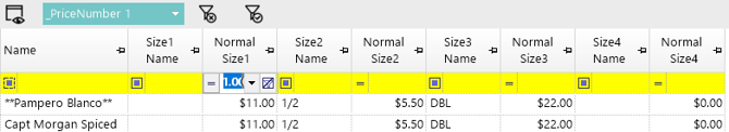- In the Normal Size 1 Field, we Filtered for the number $11.00, only showing the 2 Filtered results. Selected from the Drop Down of Data in that Field.