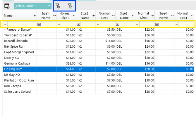 - In this example, again using the Contains Filter, we Filtered for Product Name **Pampero Blanca** but by Deleting 'Blanca**' and the initial * leaving '*Pampero', filters for all Pampero product names.
